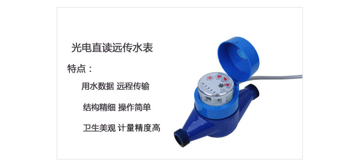 一、产品介绍:光电直读远传水表可用于计量家庭或几个居民单位流经自来水管道的水量。其工作模式符合计量法。可靠性高、抄表系统省电、耐用。自动抄表系统是为供水部门设计的新型远程控制计收费管理系统。